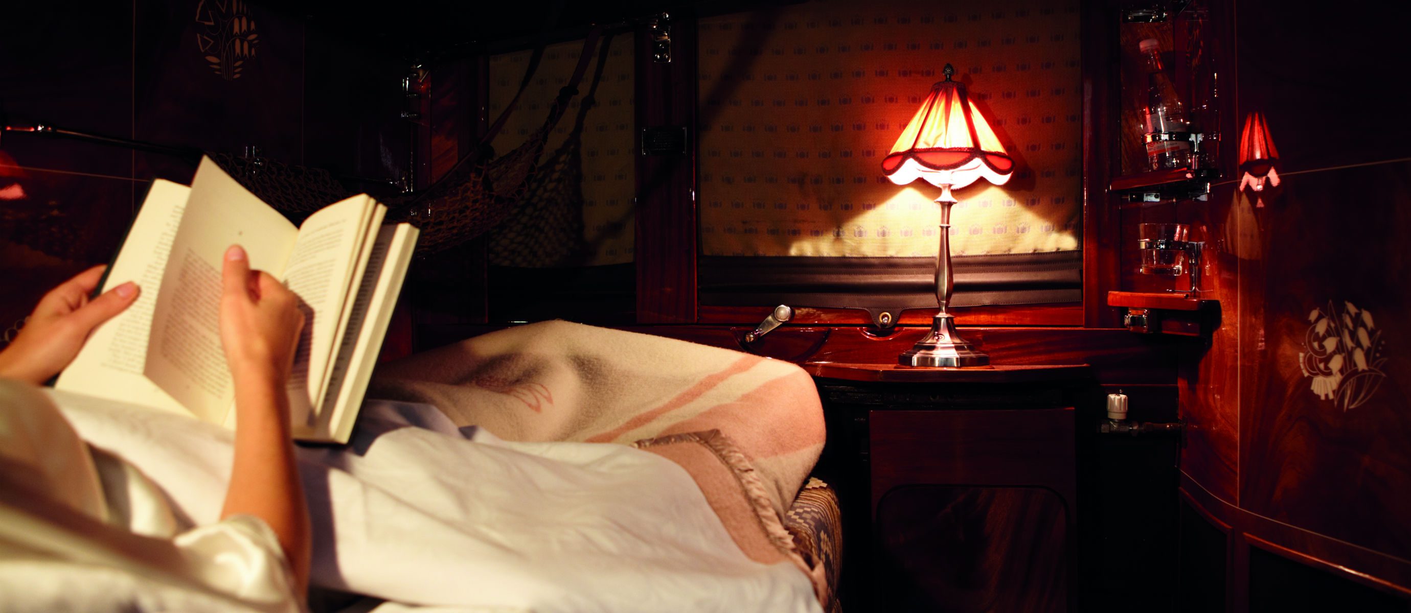 Savour the beautiful surroundings. Marvel at the opulent interiors, sparkling crystal, plush fabrics and polished woods. Relax in your own cabin as you look out over stunning landscapes.