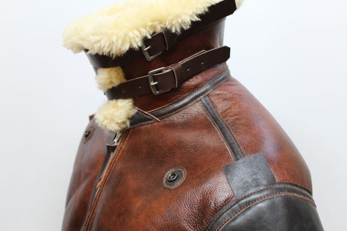 These original Type B-3 World War 2 Bomber Jackets are manufactured to exact Military Specifications. Our manufacturer in the borders of Scotland use the correct B-3 weight heavy Shearling Sheepskin with extra strong Horsehide sleeve and seam overlays for extra protection, single map pocket on the right hand side and heavy leather straps with 3-way stud collar closure for use in foul weather to enable the jacket to provide added protection to the lower part of the face. They also use the spec weight, shorter shearling for the cuffs, waistbands and windflap. All jackets use a Triple Marked Talon zipper on wide herringbone tape, Alloy buckles recast from originals, in fact everything is just as it was back then!