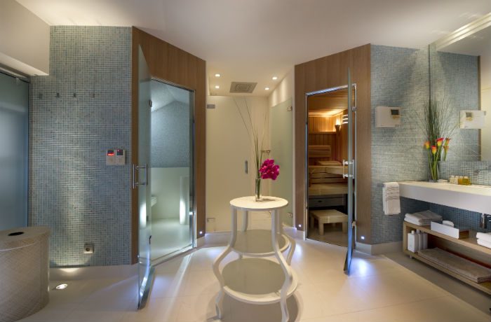 Each of the seven individually designed guest bedrooms boasts a separate enclave, complete with bathroom and private terrace.