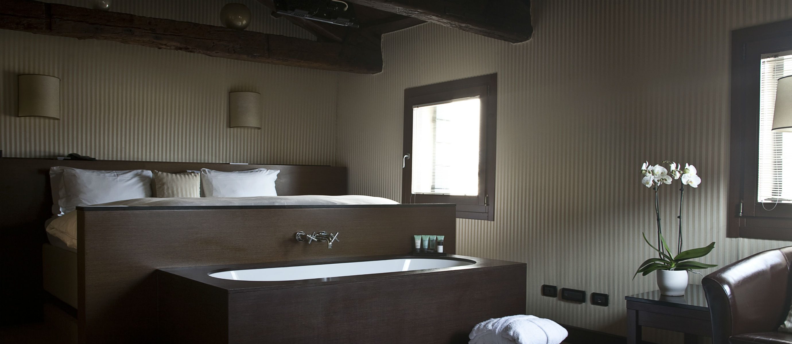 With its Murano chandeliers, flock wallpaper and heavy damask fabrics, the Ca Maria Adele is absolutely Venetian, but its African wood, polished concrete and laid-back, bohemian atmosphere mean it is also undeniably modern.