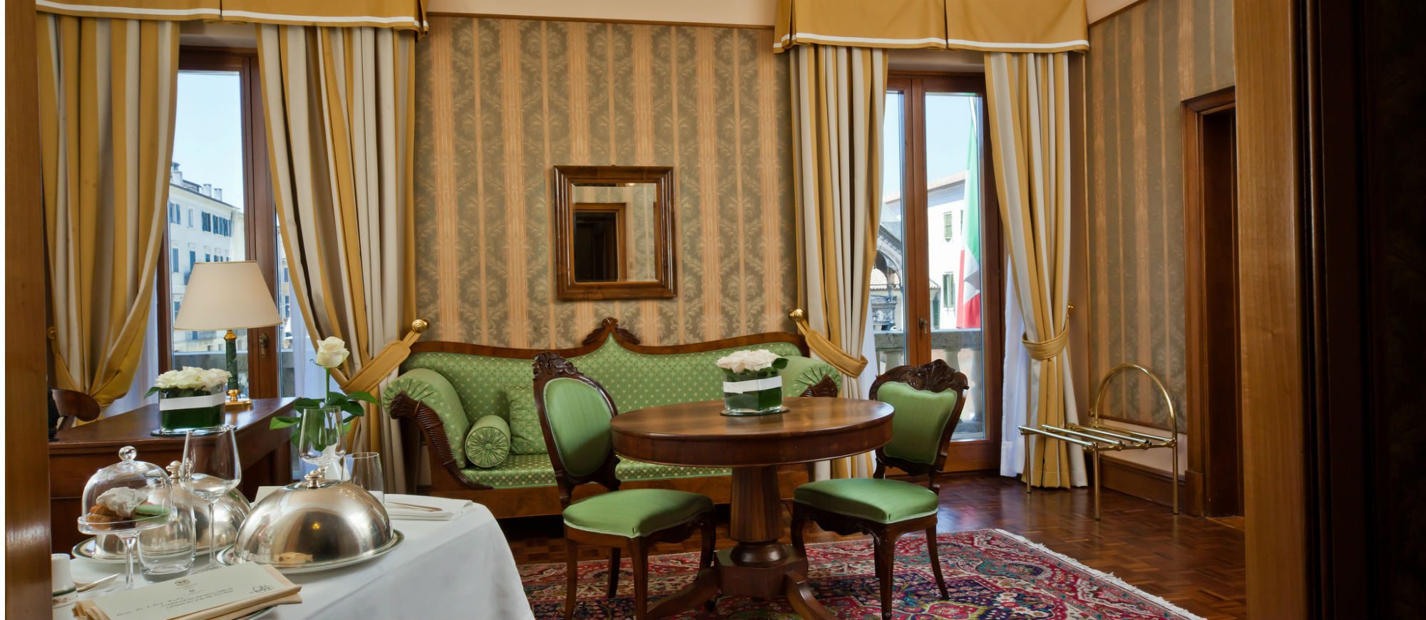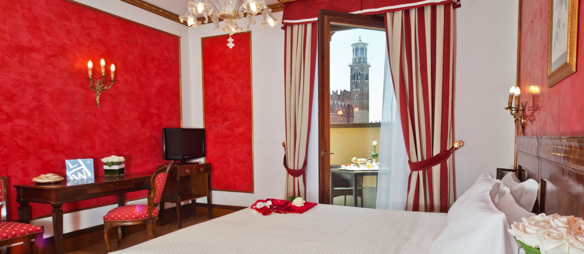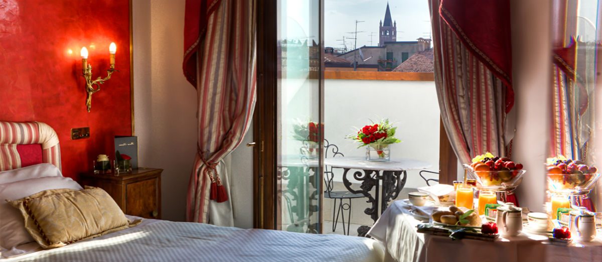 In the heart of the historic center of Verona, overlooking the Church of Santa Anastasia, just a stone’s throw from Juliet’s balcony, Piazza Bra and the Arena, one can find Due Torri Hotel, the prestigious memory keeper of the city. The building, dating back to 1300, has gone through centuries of the city history, from Scala to the Venetian domination, from the Habsburg empire to Italian Unification, from the carefree years of the Dolce Vita to our age, hosting the most important people of all times. The last major renovation, carried out by the new owners, have brought to light the frescoes of Arena Casarini, decorated with circus scenes: a priceless treasure returned to the city.