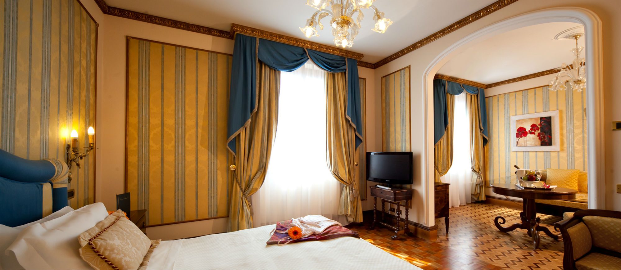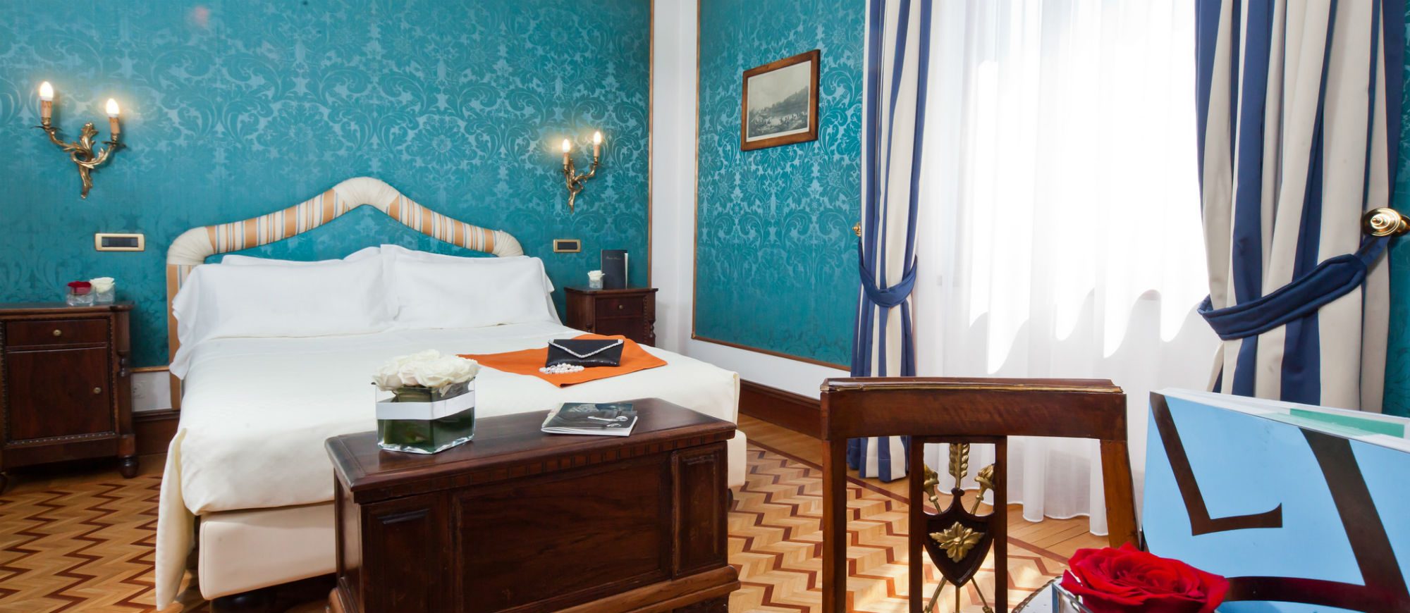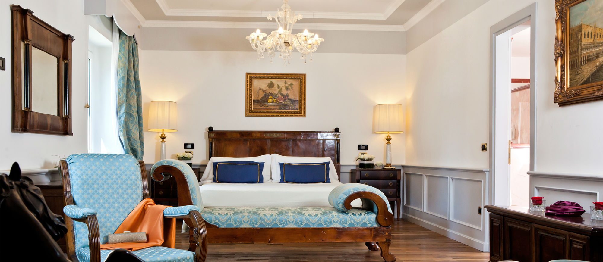 In the heart of the historic center of Verona, overlooking the Church of Santa Anastasia, just a stone’s throw from Juliet’s balcony, Piazza Bra and the Arena, one can find Due Torri Hotel, the prestigious memory keeper of the city. The building, dating back to 1300, has gone through centuries of the city history, from Scala to the Venetian domination, from the Habsburg empire to Italian Unification, from the carefree years of the Dolce Vita to our age, hosting the most important people of all times. The last major renovation, carried out by the new owners, have brought to light the frescoes of Arena Casarini, decorated with circus scenes: a priceless treasure returned to the city.