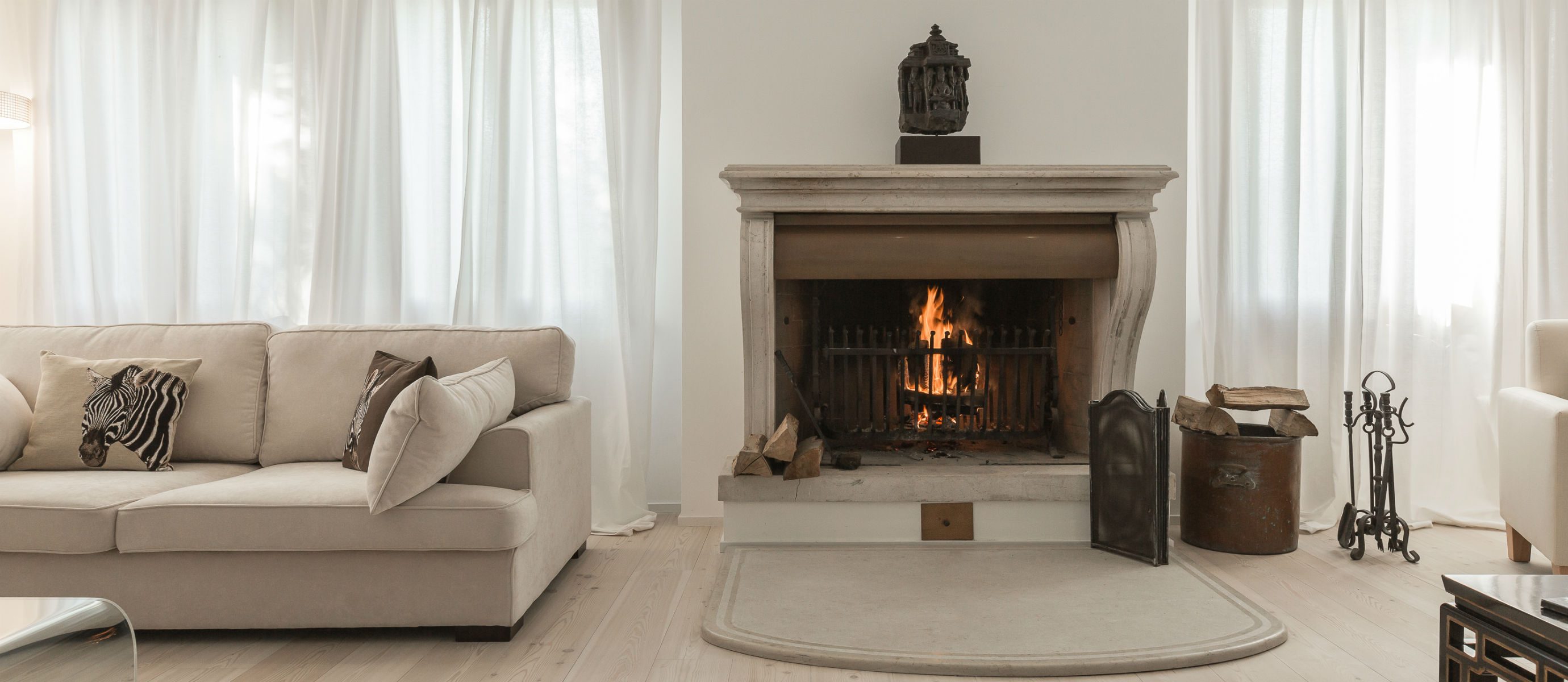Blond wood, lots of whites, Eastern rugs, and decorative elements, inspiring artworks, and natural muted colours and fabrics make the island a perfect place to hang out.