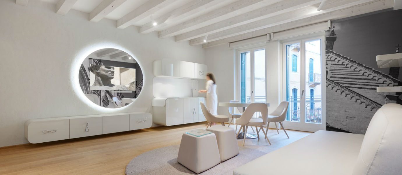 Located in the historic centre of the city, Piazza dei Signori, also known as Piazza Dante, adjacent to Piazza delle Erbe. From the inspiration of Simone Micheli, world famous Architect, futuristic apartments have taken shape with the most modern AAL (Ambient Assisted Living) technology.