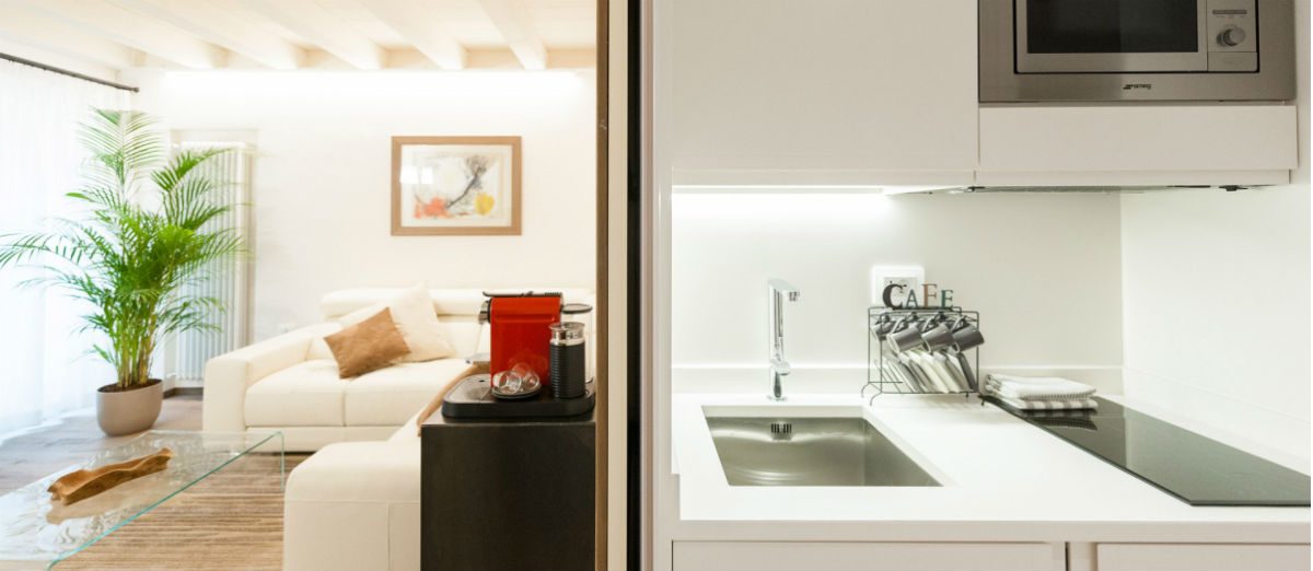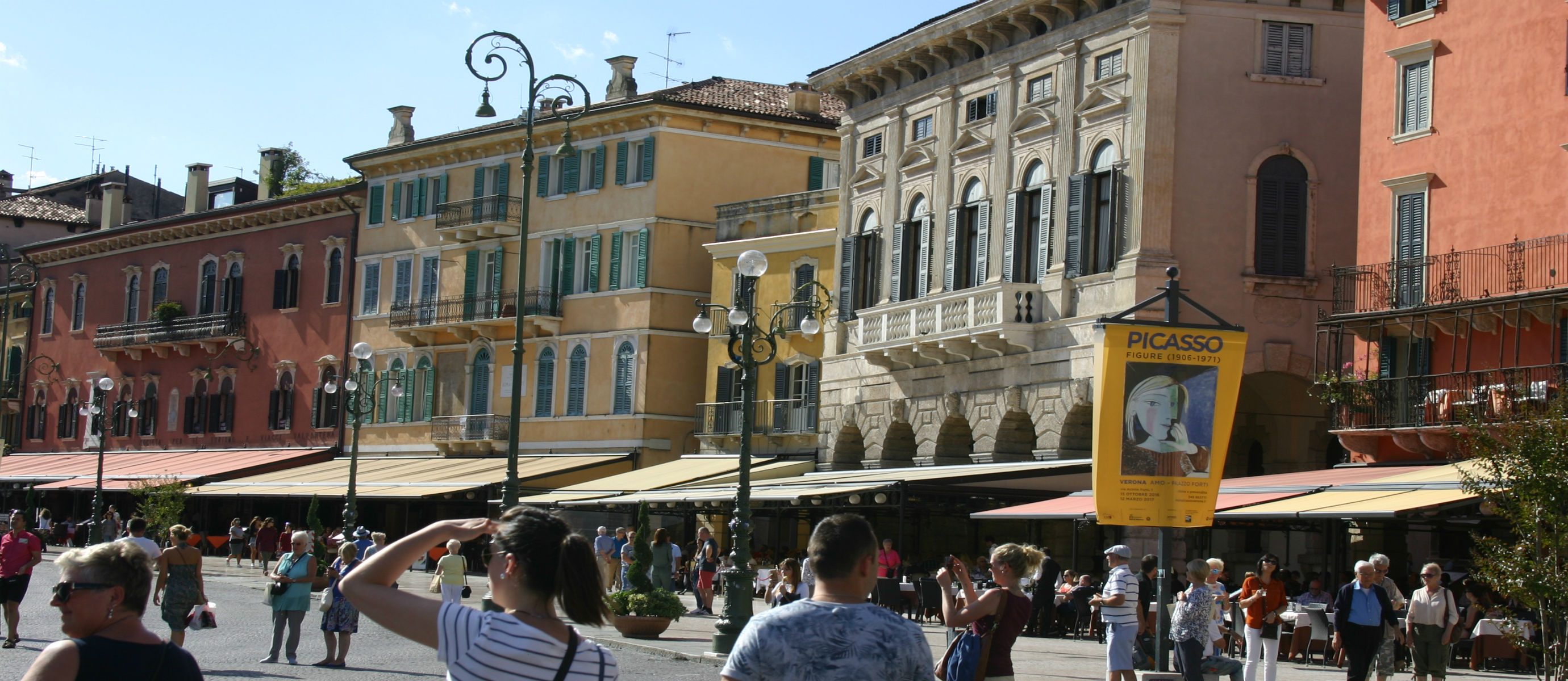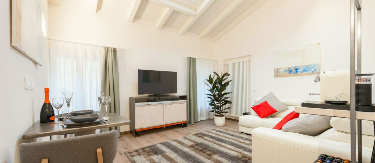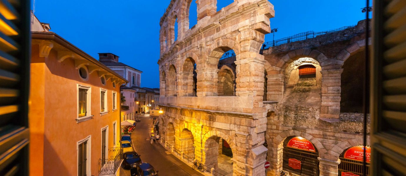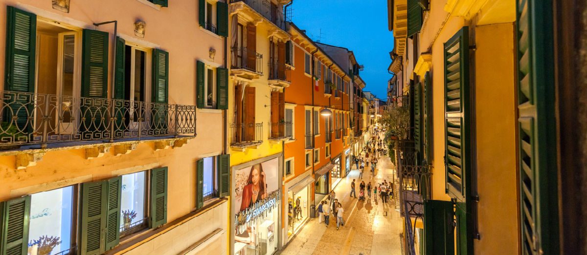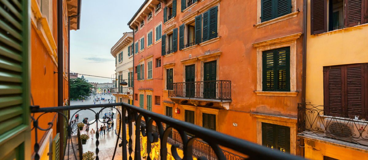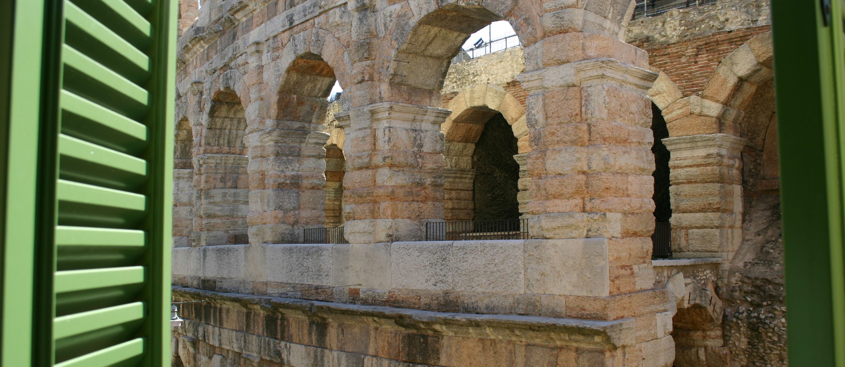 Traditional house with two contemporary style apartments in the centre of Verona, overlooking the Arena. The apartments are on the left side of Via Mazzini with the entrance from and views over Via Dietro Anfiteatro, and partial views of the square and the city.