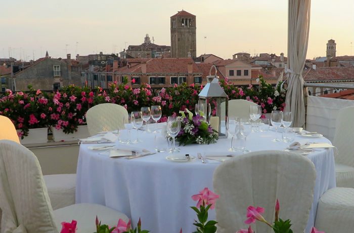 The “Rooftop terrace” is perfect for cocktails and special drinks at aperitif time. This exclusive bar offers a variety of drinks ranging from traditional Spritz, Bellini, fruit cocktail (from near Rialto market). The latter are an innovative and reflect the philosophy of the Chef’s cuisine: healthy and natural.